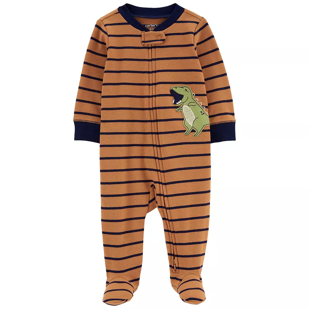 Your little man will look just too cute in this baby boys’ striped T-rex sleep and play from Carter’s.