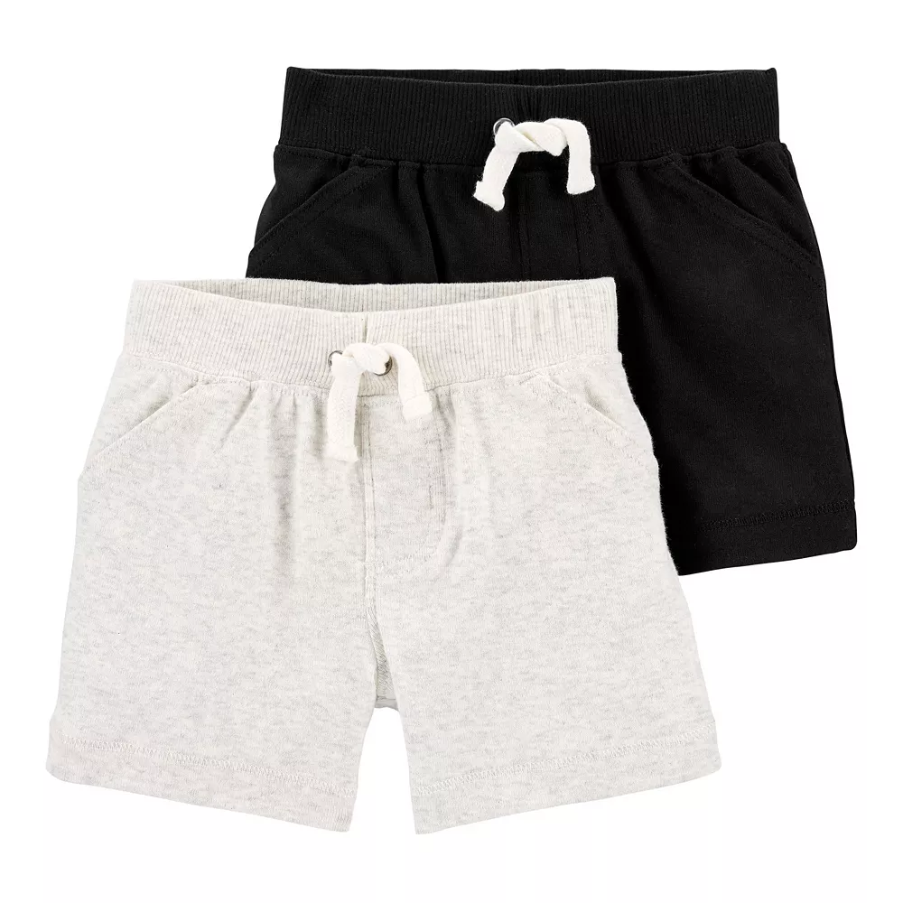 Your little one will have two, comfortable options with these baby Carter’s shorts. In gray/black.
