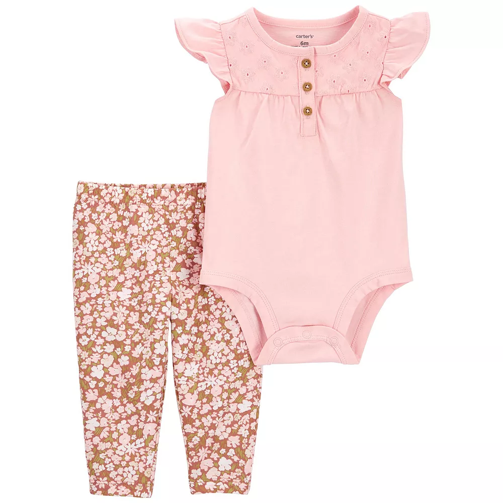 Expand your little one’s wardrobe with this Baby Carter’s 2-Piece Floral Bodysuit Pant Set.
