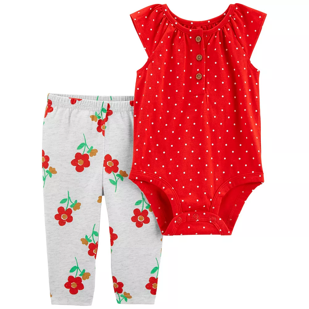 Expand your little one’s wardrobe with this Baby Carter’s 2-Piece Polka Dot Bodysuit Pant Set.