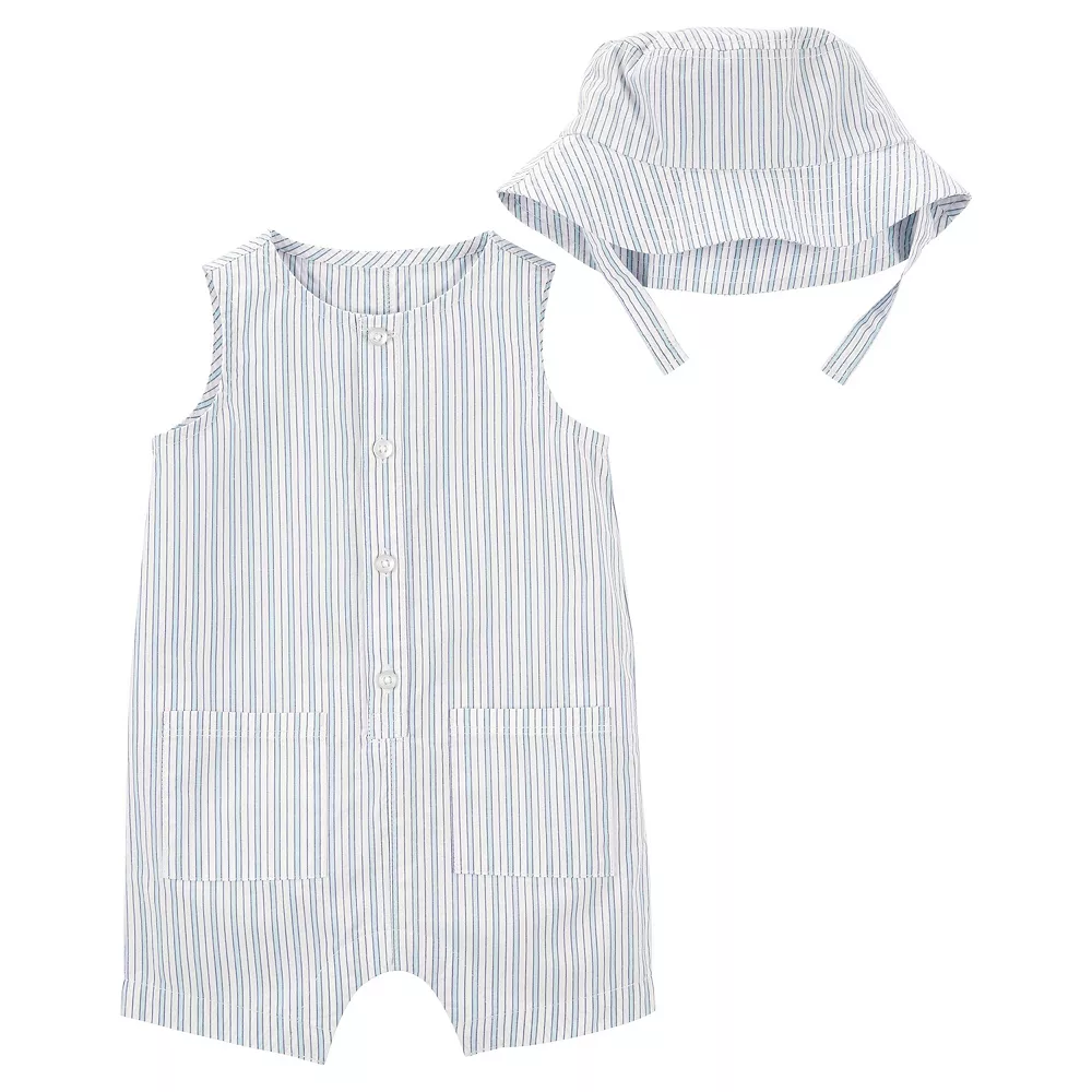 Cute style starts with this Baby Carter’s 2-Piece Striped Romper & Bucket Hat.