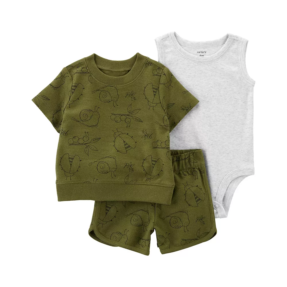 Expand your little one’s wardrobe with this Baby Carter’s 3-Piece Bug Print Shorts Set.