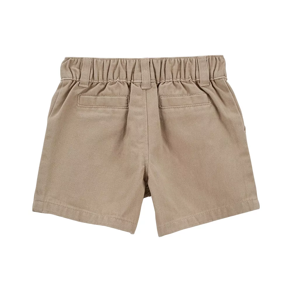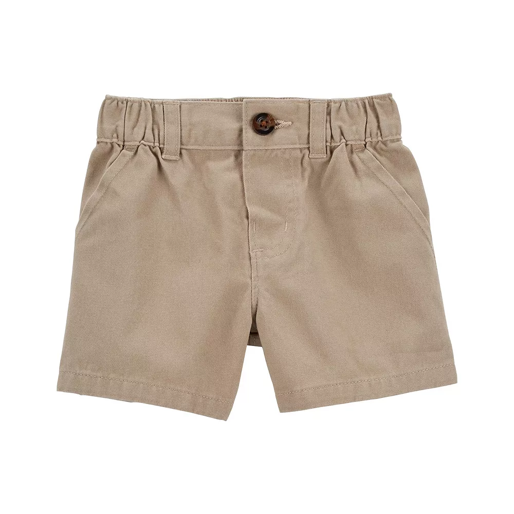 - Shorts: Elastic-back waistband. Partial zip-fly and button closure.