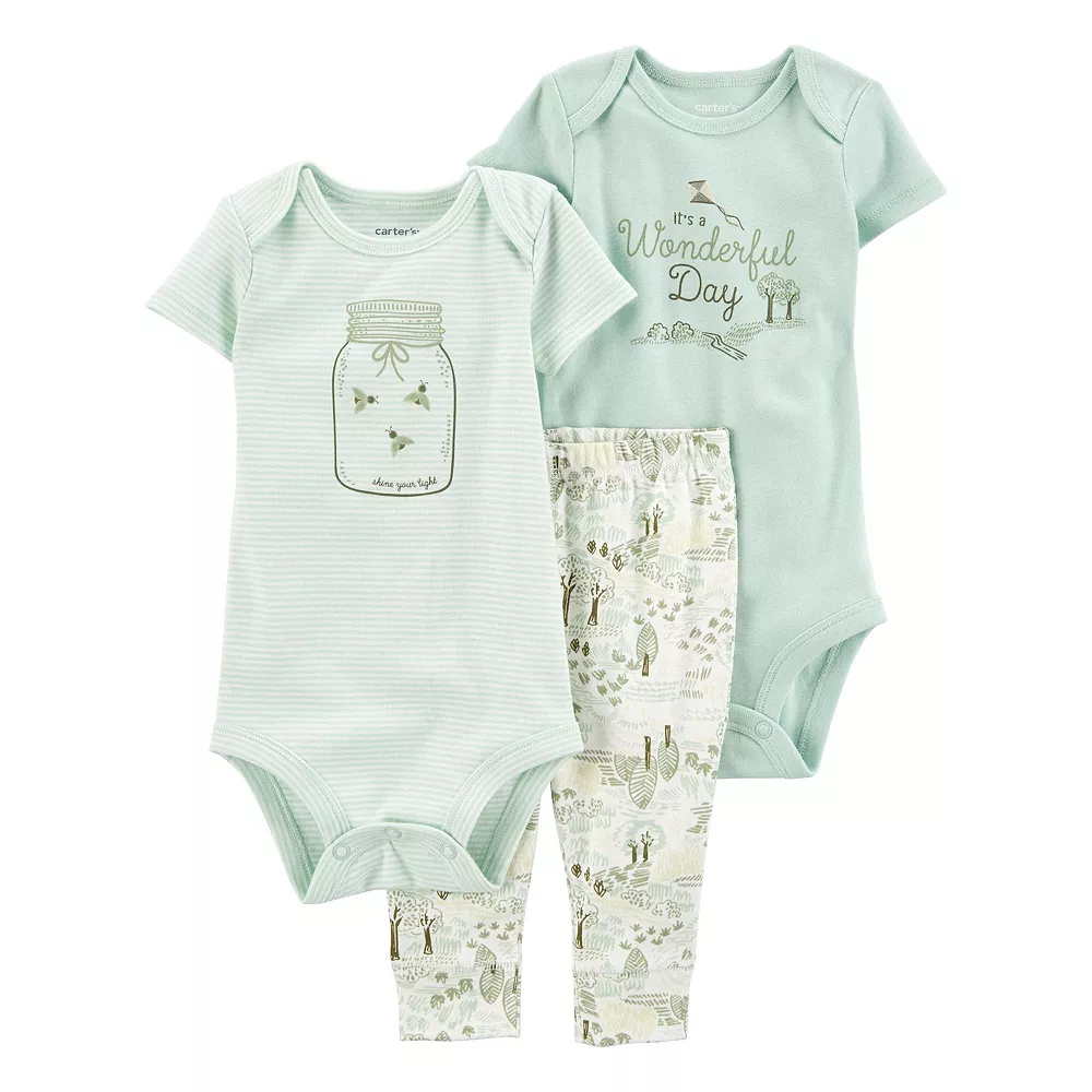 Your little one will look adorable in this baby Carter’s bodysuit and pants set.