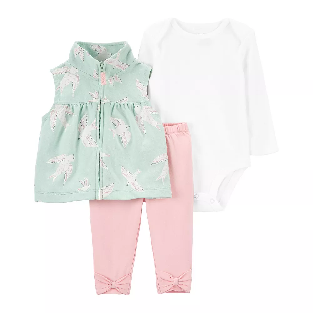 Expand your little one’s wardrobe with this Baby Carter’s 3-Piece Mint Vest Set.