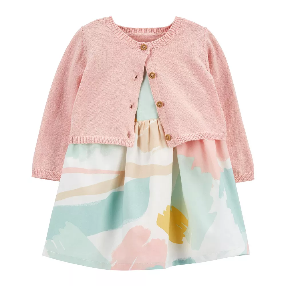 Cute style starts with this Baby Girl Carter’s 2-Piece Cardigan & Dress Set.