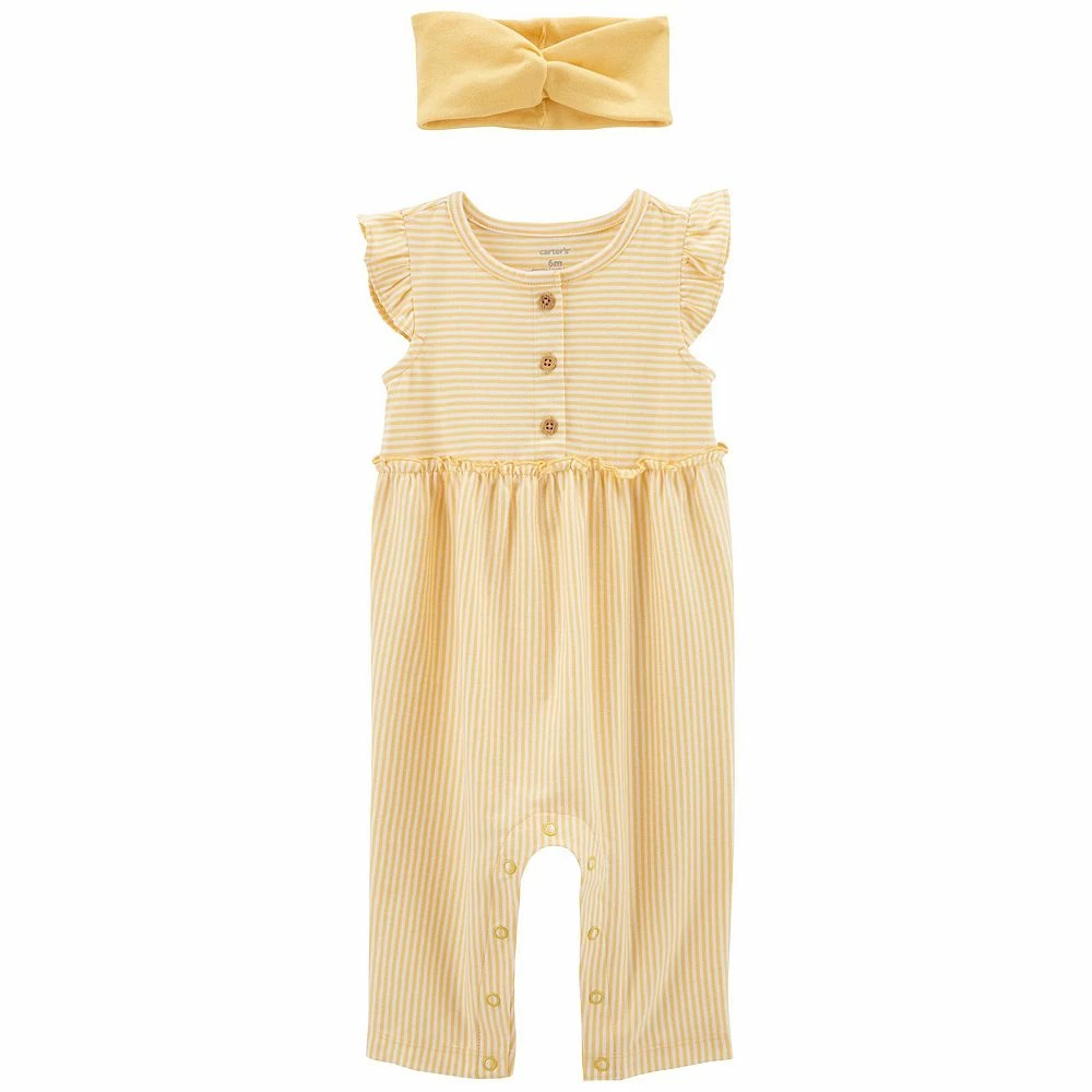 Give her a cute look with this Baby Girl Carter’s 2-Piece Jumpsuit & Headwrap Set.