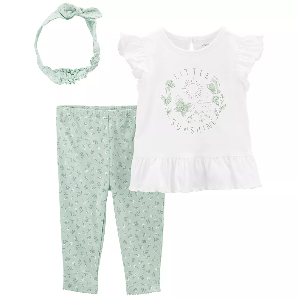 Give her a cute look with this Baby Girl Carter’s 3-Piece Little Sunshine Outfit.