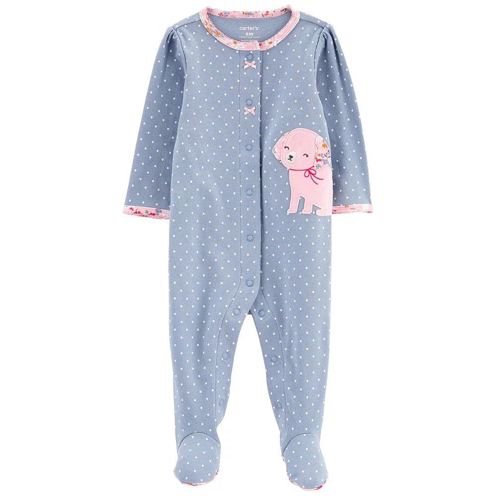 Your little lady will look even cuter than she already does (if that’s even possible) in this baby girls’ polka dot puppy sleep and play from Carter’s.