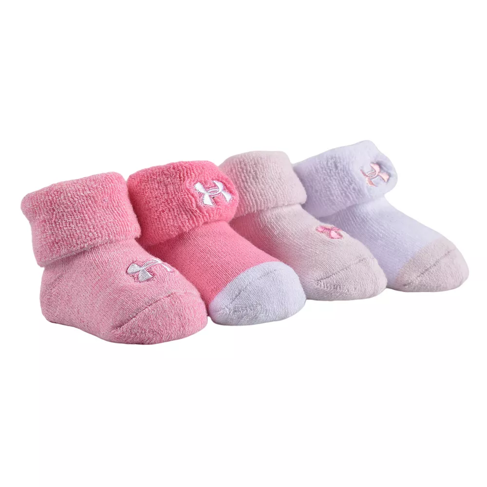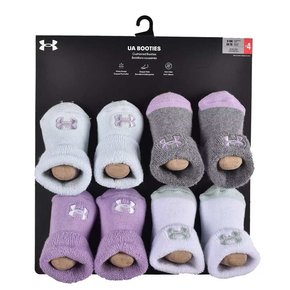 Keep her little toes nice and toasty in these baby girls’ embroidered booties from Under Armour.