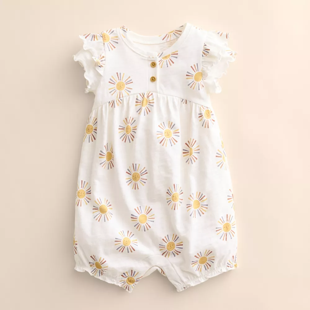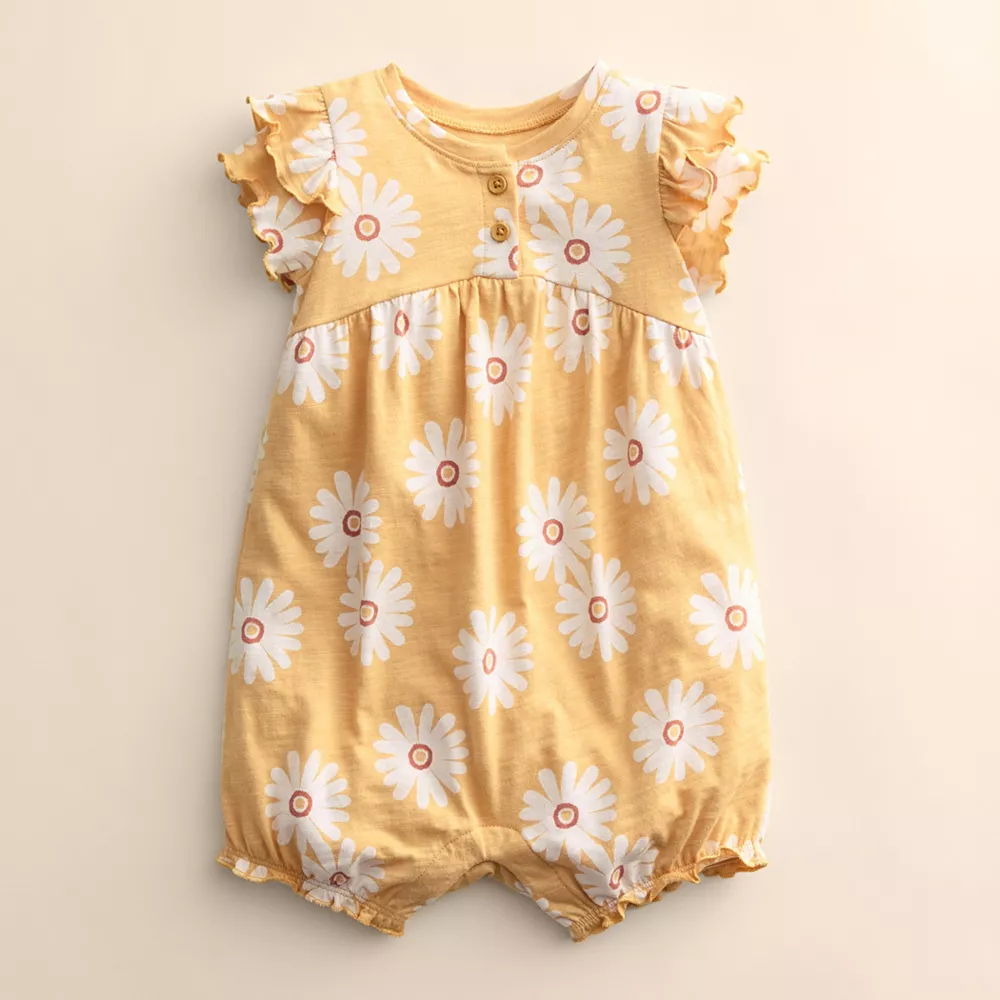 Sweet and sustainable, you’ll feel good dressing your little one in this baby Little Co. by Lauren Conrad henley romper.