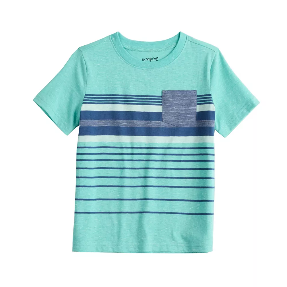 Keep his look classic in this boys’ striped pocket tee from Jumping Beans.