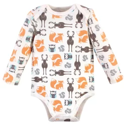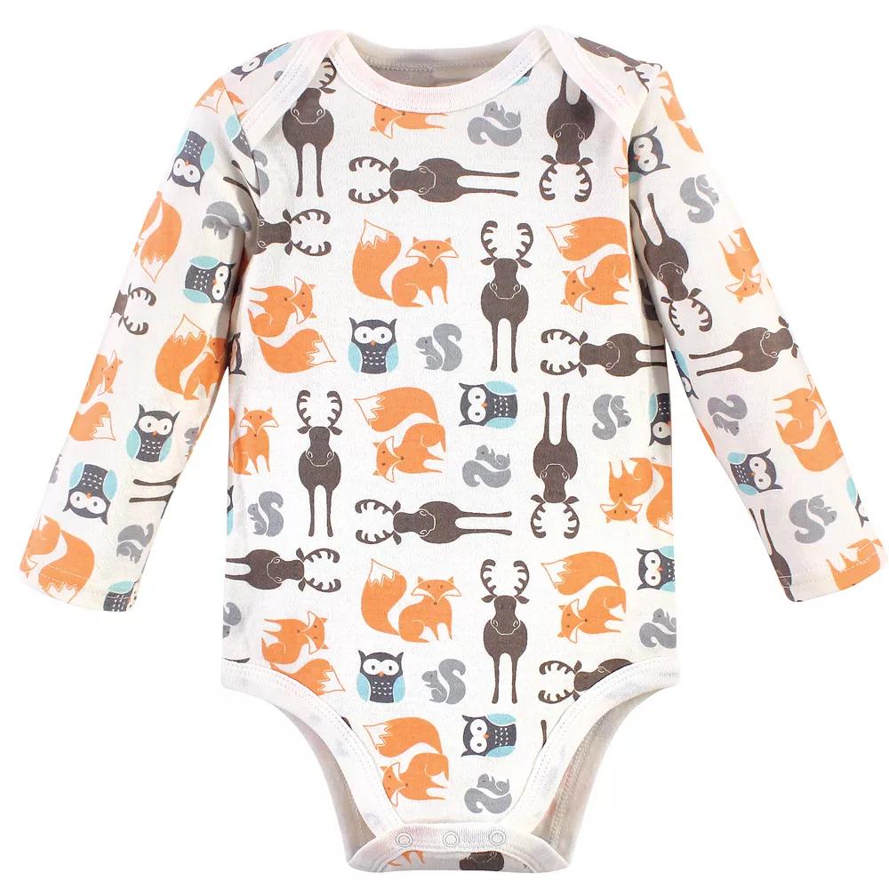 Hudson Baby long-sleeve bodysuits are an essential part of baby’s wardrobe. Our bodysuits feature adorable prints, embroideries, stripes and solids and provide a comfortable base layer that’s great for pairing with pants, shorts, or even wearing under outfits. Our bodysuits are comfortable and cozy for all-day, everyday wear for your little one. Hudson Baby Cotton Long-Sleeve Bodysuits 5pk, Gray Forest is a great baby essentials set for your little one.