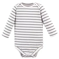 Hudson Baby long-sleeve bodysuits are an essential part of baby’s wardrobe. Our bodysuits feature adorable prints, embroideries, stripes and solids and provide a comfortable base layer that’s great for pairing with pants, shorts, or even wearing under outfits. Our bodysuits are comfortable and cozy for all-day, everyday wear for your little one. Hudson Baby Cotton Long-Sleeve Bodysuits 5pk, Gray Penguin is a great baby essentials set for your little one.