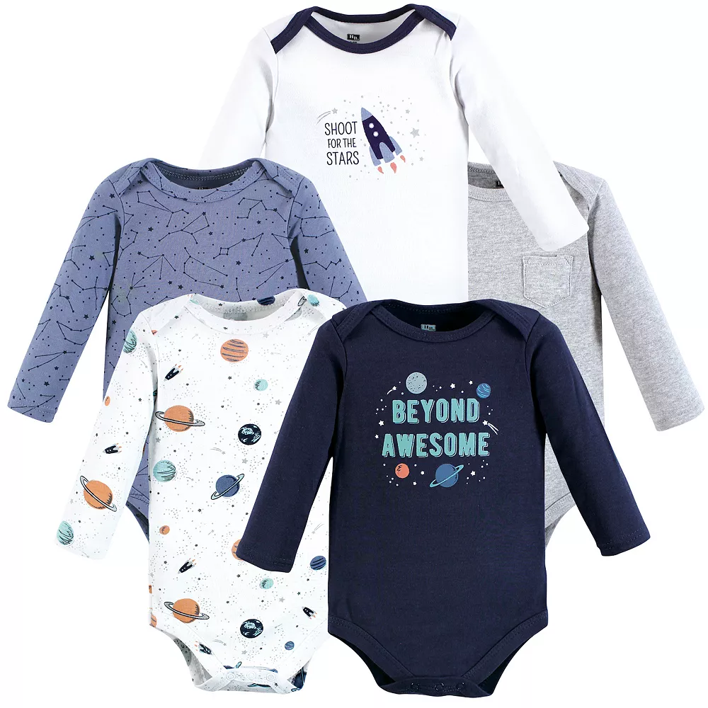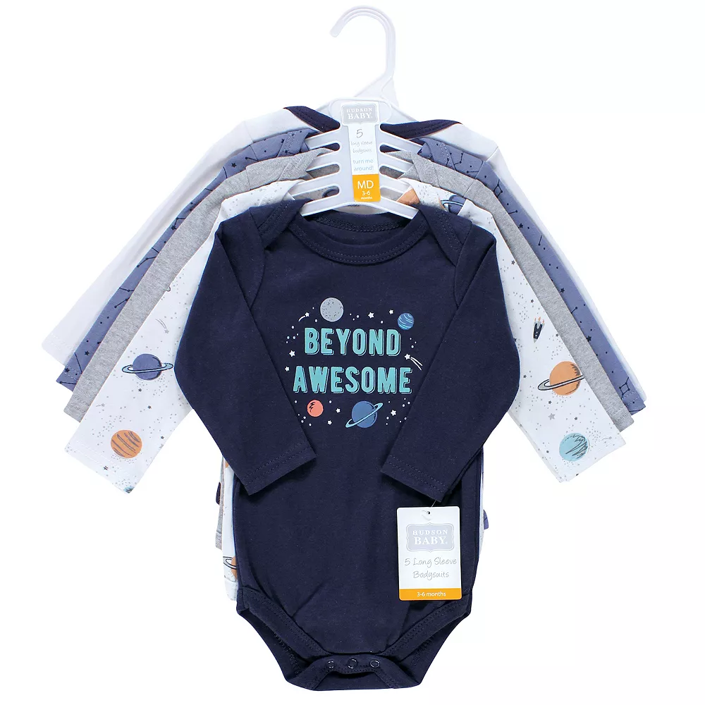 Hudson baby long-sleeve bodysuits are an essential part of baby’s wardrobe. Our bodysuits feature adorable prints, embroideries, stripes and solids and provide a comfortable base layer that’s great for pairing with pants, shorts, or even wearing under outfits. Our bodysuits are comfortable and cozy for all-day, everyday wear for your little one.