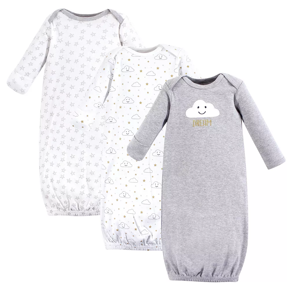 Hudson Baby cotton gowns are super comfortable and cozy and feature playful patterns for sweet dreams. An elastic band at the bottom and a lap neck make dressing and diaper changes simple. Hudson Baby Infant Cotton Long-Sleeve Gowns 3pk, Gray Clouds, 0-6 Months is a great baby essentials set for your little one.