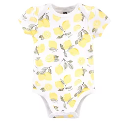 Hudson Baby bodysuits are an essential part of baby’s wardrobe. Our bodysuits feature adorable prints, embroideries, stripes and solids and provide a comfortable base layer that’s great for pairing with pants, shorts, or even wearing under outfits. Our bodysuits are comfortable and cozy for all-day, everyday wear for your little one. Hudson Baby Infant Girl Cotton Bodysuits 3pk, Lemon is a great baby essentials set for your little one.