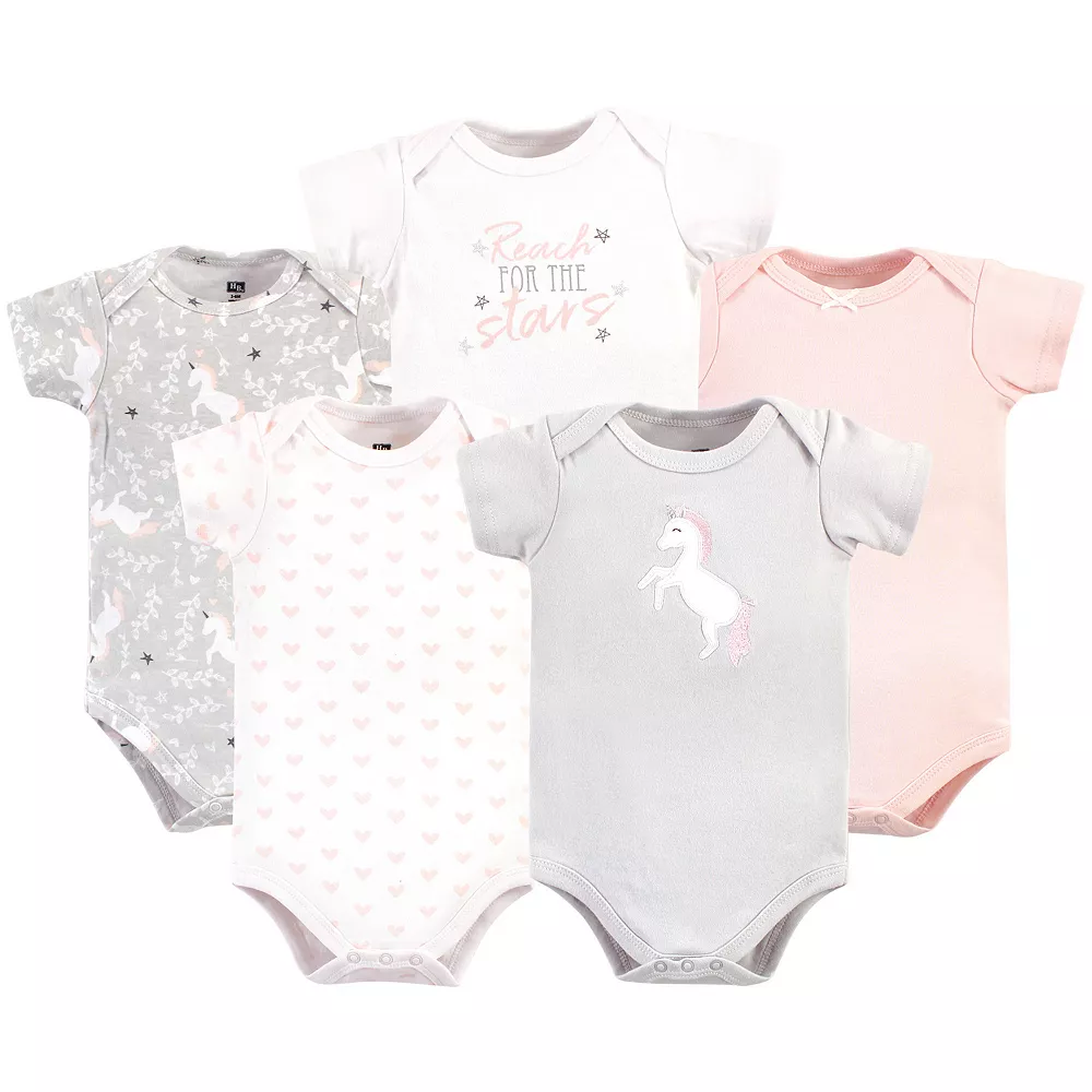 Hudson Baby bodysuits are an essential part of baby’s wardrobe. Our bodysuits feature adorable prints, embroideries, stripes and solids and provide a comfortable base layer that’s great for pairing with pants, shorts, or even wearing under outfits. Our bodysuits are comfortable and cozy for all-day, everyday wear for your little one. Hudson Baby Infant Girl Cotton Bodysuits 5pk, Whimsical Unicorn is a great baby essentials set for your little one.