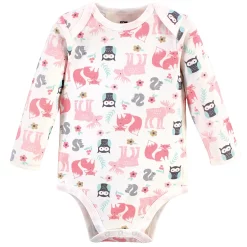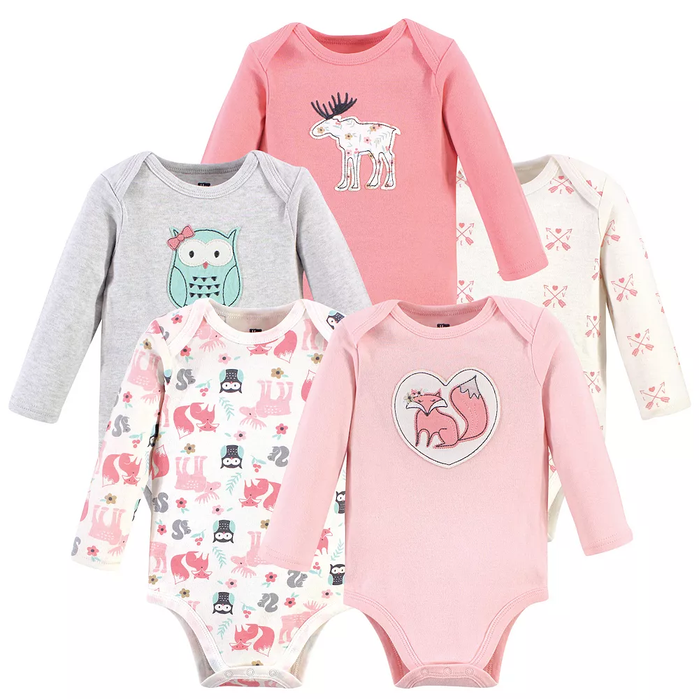 Hudson Baby long-sleeve bodysuits are an essential part of baby’s wardrobe. Our bodysuits feature adorable prints, embroideries, stripes and solids and provide a comfortable base layer that’s great for pairing with pants, shorts, or even wearing under outfits. Our bodysuits are comfortable and cozy for all-day, everyday wear for your little one. Hudson Baby Infant Girl Cotton Long-Sleeve Bodysuits 5pk, Pink Forest is a great baby essentials set for your little one.