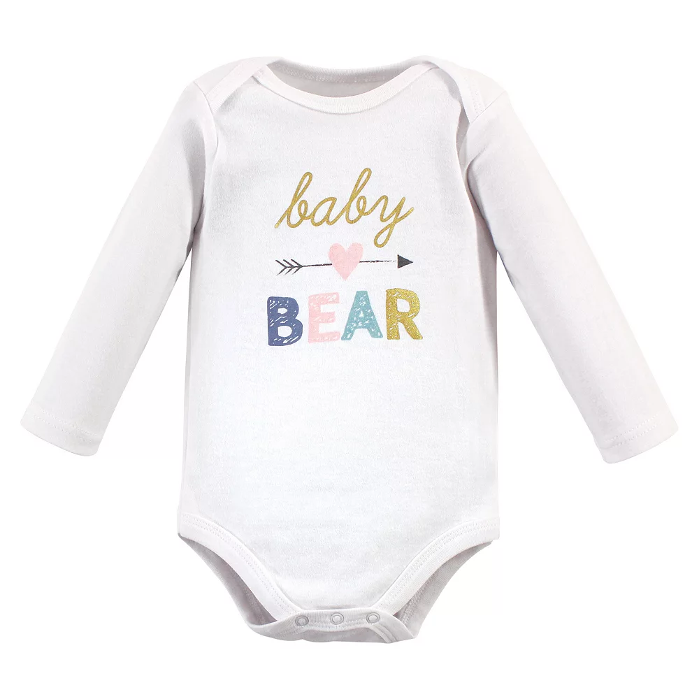 Hudson Baby long-sleeve bodysuits are an essential part of baby’s wardrobe. Our bodysuits feature adorable prints, embroideries, stripes and solids and provide a comfortable base layer that’s great for pairing with pants, shorts, or even wearing under outfits. Our bodysuits are comfortable and cozy for all-day, everyday wear for your little one.