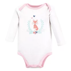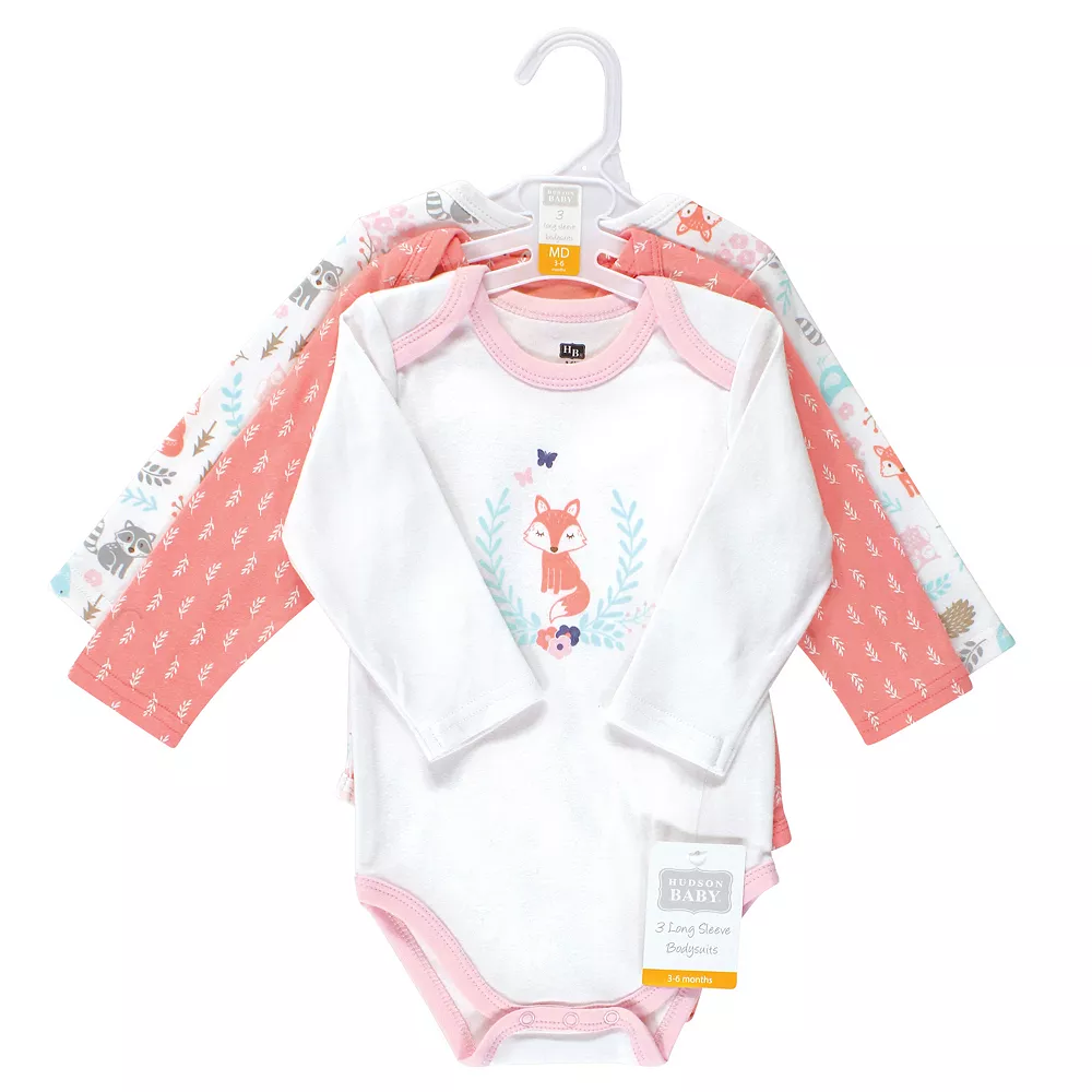 Hudson Baby long-sleeve bodysuits are an essential part of baby’s wardrobe. Our bodysuits feature adorable prints, embroideries, stripes and solids and provide a comfortable base layer that’s great for pairing with pants, shorts, or even wearing under outfits. Our bodysuits are comfortable and cozy for all-day, everyday wear for your little one.