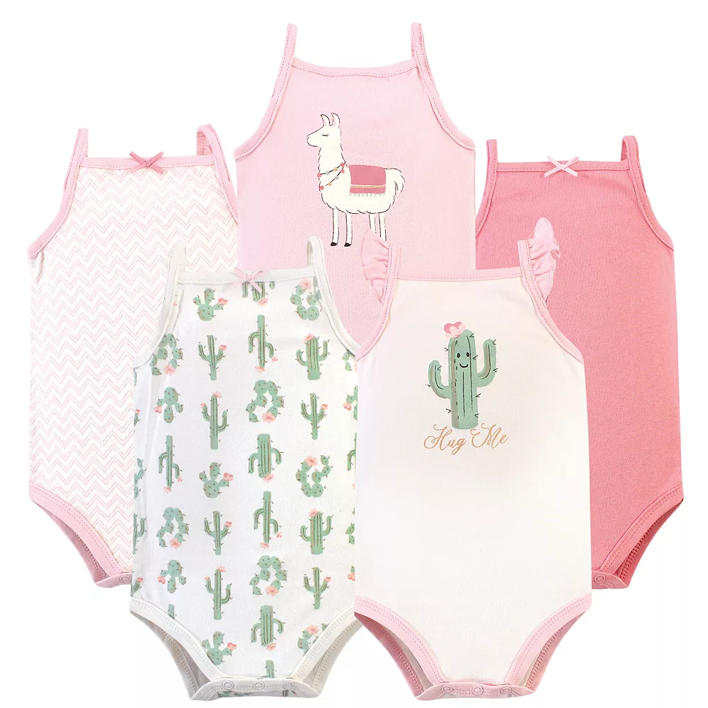 Hudson Baby sleeveless bodysuits are an essential part of baby’s wardrobe. Our bodysuits feature adorable prints, embroideries, stripes and solids and provide a comfortable base layer that’s great for pairing with pants, shorts, or even wearing under outfits. Our bodysuits are comfortable and cozy for all-day, everyday wear for your little one. Hudson Baby Infant Girl Cotton Sleeveless Bodysuits 5pk, Pink Cactus is a great baby essentials set for your little one.
