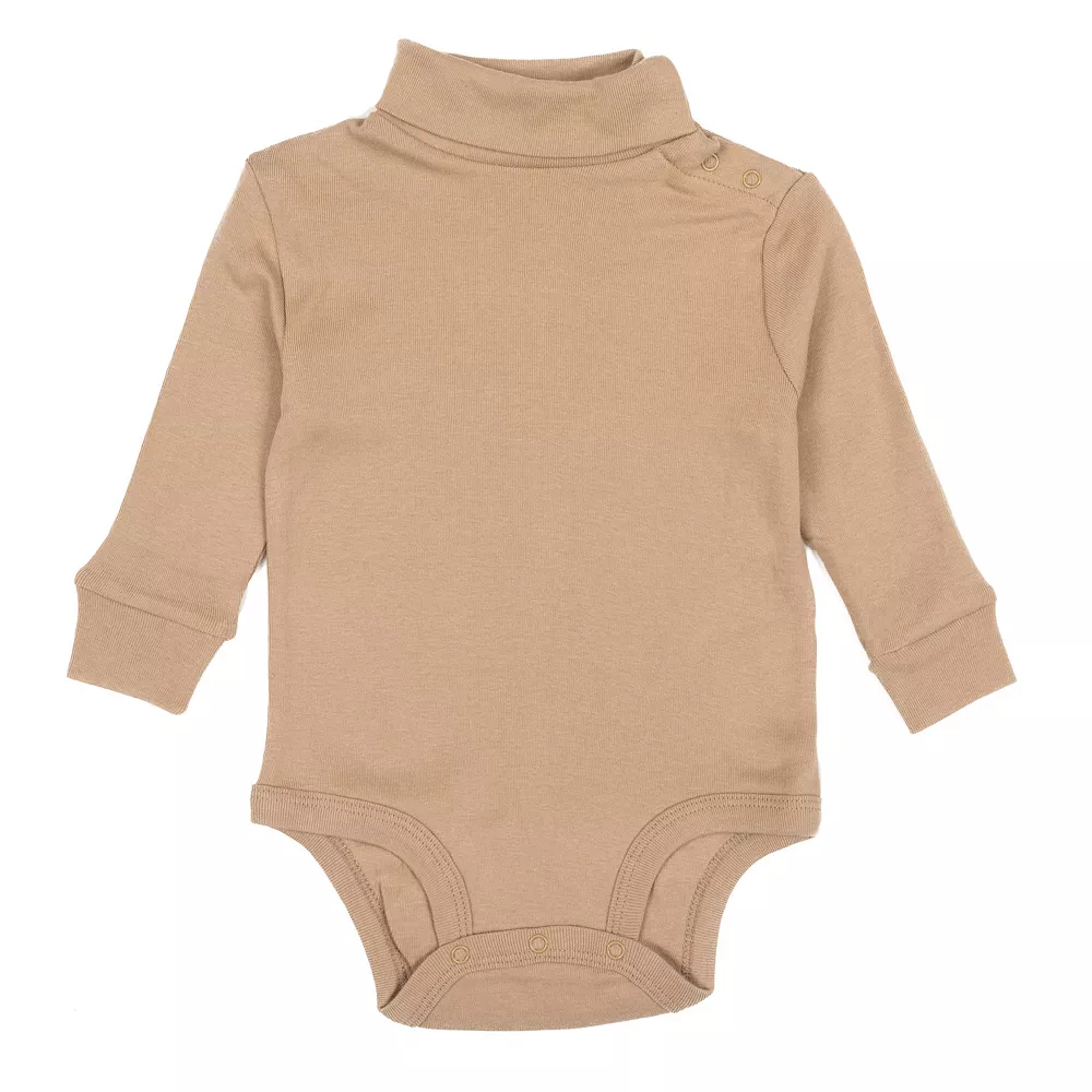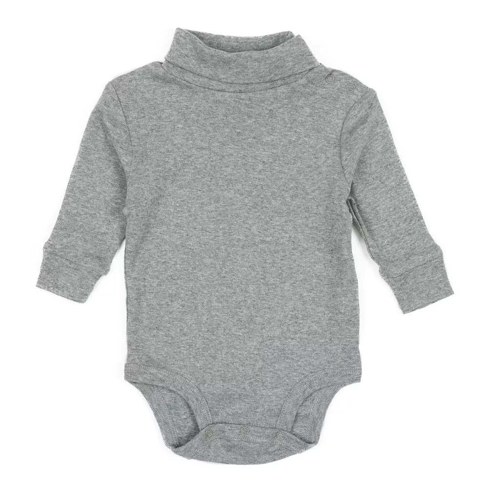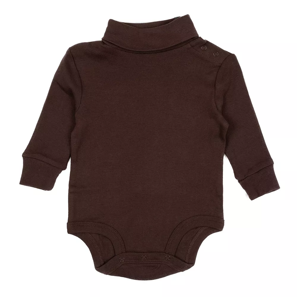 The Baby Turtleneck Bodysuit promises a fun and fashionable look for your little one no matter the occasion. Its long-sleeves with ribbed cuffs at the wrists easily complements the turtleneck design, both providing an overall slim feeling for the wearer. Bottoms feature buttons that easily snap together, and are adjustable for your little one’s comfortable needs. The cotton material allows a warm feeling, while these sizes range from ages 3 months to 2 years old. With endless colors to choose from, the Baby Turtleneck Bodysuit promises the best look!