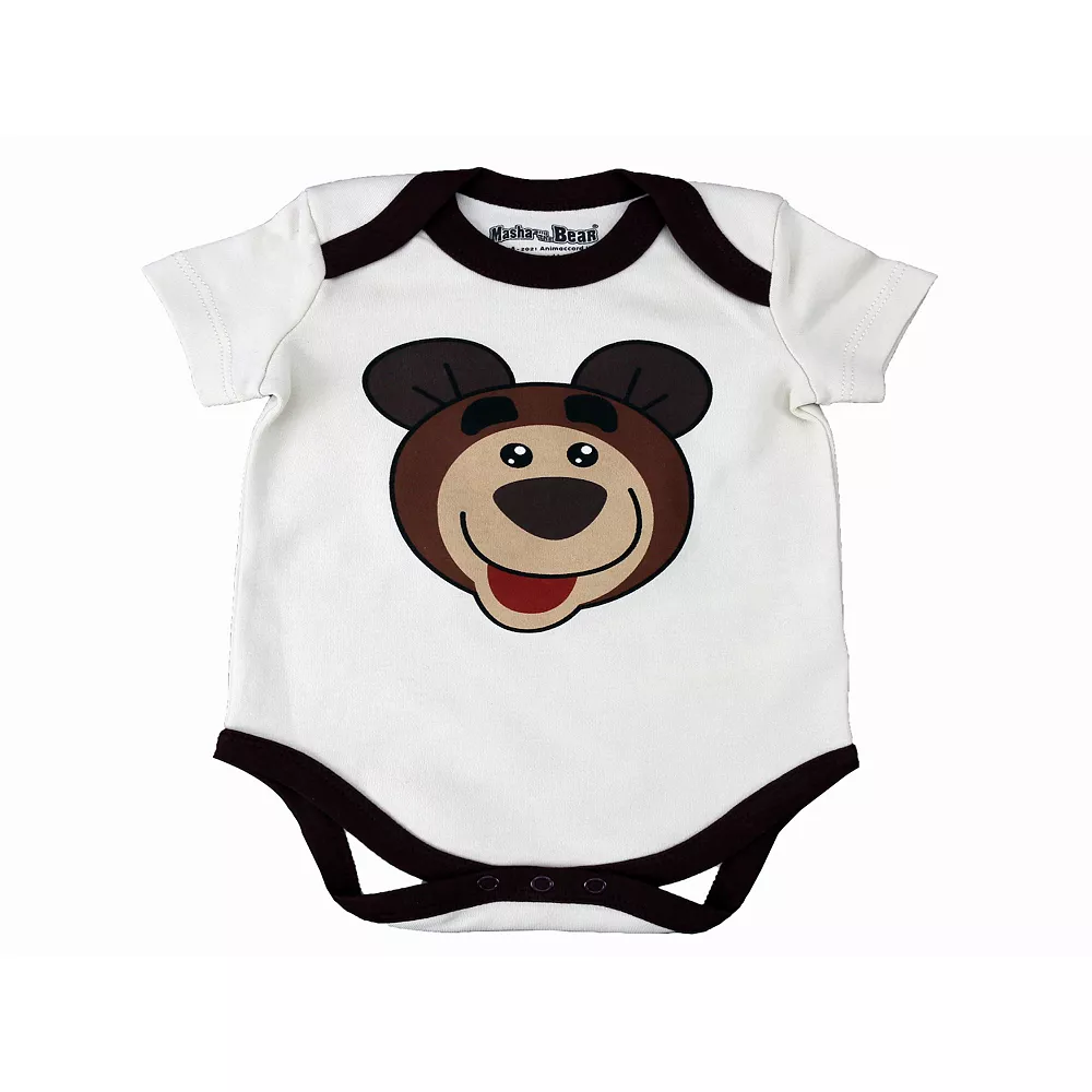 Welcome the newest member of the family with this adorable short-sleeve bodysuit. Printed on the front is a digital print of a simplified cartoon face of the Bear smiling. Simple yet stylish, this bodysuit will keep your child warm and cozy. This piece also has a brown lining around the neckline and bottom opening. Avoid itchy or scratchy fabrics and keep your child comfortable all day long with this bodysuit that is made from 100 percent cotton. Even the littlest children will fall in love with Masha and her silly friends, start your child off early as a fan of this fun show. This bodysuit makes for the perfect gift for any expecting parents and their little future fan of Masha and the Bear; get this cute piece for any child on your list this year. It will make for a wonderful baby shower, birthday, or holiday gift. It is also conveniently machine washable so that you can worry less and will have more time to spend with your little one. To help make life easy and more snuggly, get the short-sleeve bodysuit from Masha and the Bear.