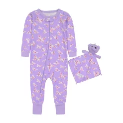 She’ll flutter into blissful sleep when wearing this baby-soft jersey sleepsuit. With just the right amount of stretch to keep her comfortable all night long. This soft lilac outfit features an all-over floral butterfly print, a full-length zipper for easy changing, and cozy convertible foot covers for cooler nights. A matching baby buddy will keep her company as she sleeps soundly.