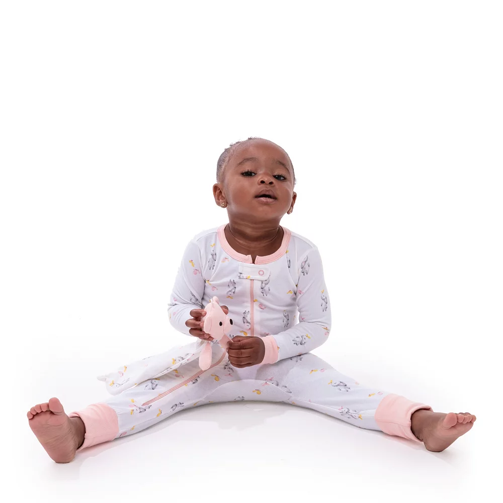 Some-bunny’s going to be snoozing snugly all night in this long sleeve rabbit onesie. It features a zip-up front for super easy mid-sleep changes and convertible feet for optimal temperature control.