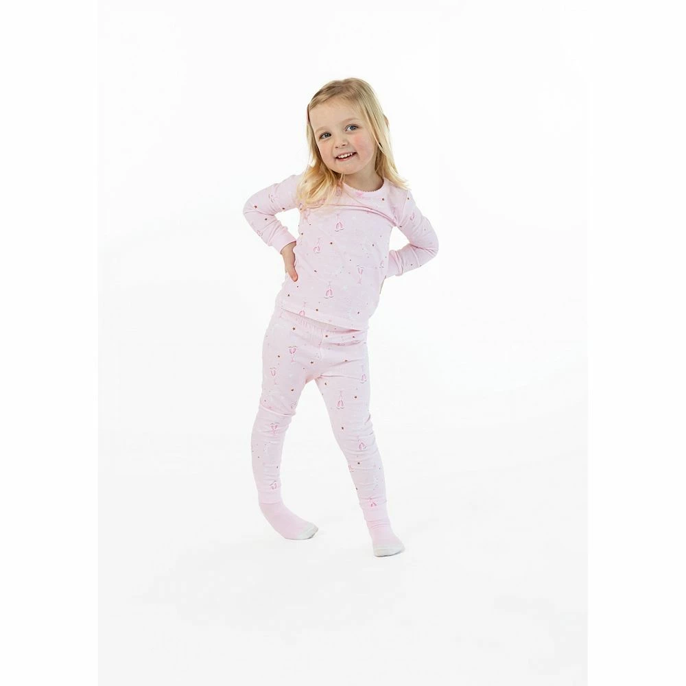 Your little sugar plum fairy will have a magical night’s sleep in this super-soft, snug fit, 2-piece pajama set. Make her ballet dreams come true with the delicate all-over ballet slipper print and matching soft pink socks. Features a darling little bow on the neckline and elasticated cuffs for a comfortable night’s sleep.