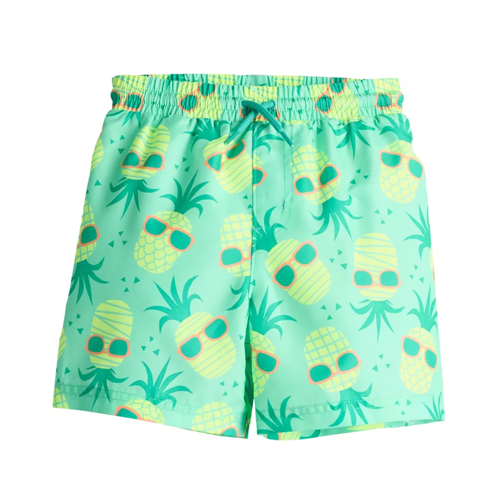 Jumping Beans modernizes his pool looks with these boys’ board shorts.
