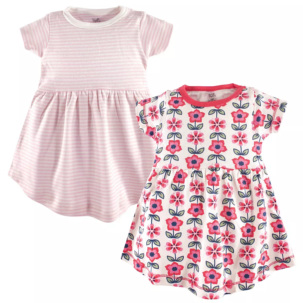 Touched by Nature is an organic clothing brand with beautifully designed clothing, bibs, blankets, hair accessories and socks made of premium organic cotton fabric. Organic cotton feels super soft on skin as the fibers are natural and breathable. Organic cotton is made without the use of synthetic pesticides and fertilizers, so it is an environmentally-friendly alternative compared to traditional farming methods. Touched by Nature organic cotton dress is made of 100 percent organic interlock cotton (exclusive of decoration) and the perfect outfit for your girl. Featuring adorable prints and stripes, our dresses are perfect outfits for special occasions because they are fashionable and comfortable to wear. Our dresses are made of premium fabrics and the most convenient construction for easy on and easy off. Make dress time more fun with Touched by Nature dresses. Touched by Nature Baby and Toddler Girl Organic Cotton Short-Sleeve Dresses 2pk, Flower is a great baby essentials set for your little one.