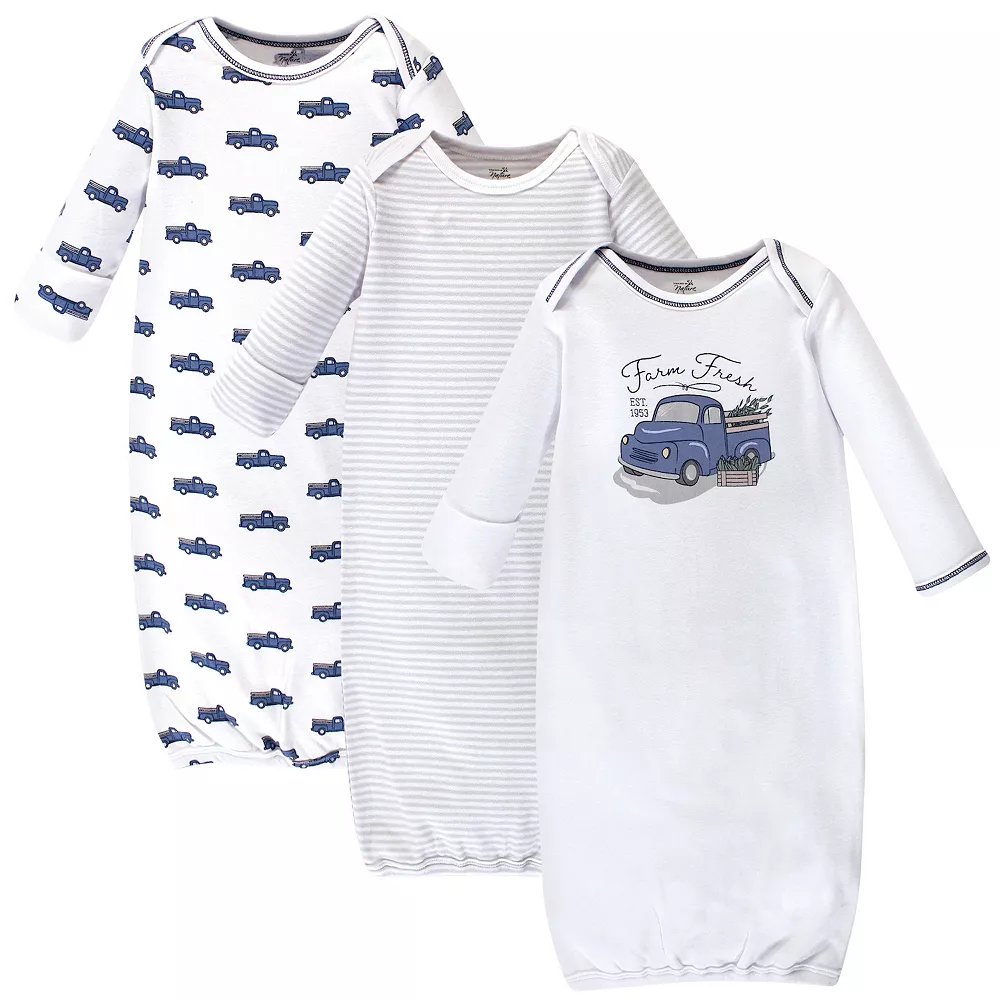 Touched by Nature organic cotton gowns feature playful patterns for sweet dreams. Our organic fabric is super-soft and gentle on baby’s skin, making sleep time cozy and comfortable. The elastic band at the bottom and a lap neck make dressing and diaper changes a breeze. Our preemie gowns are suitable for preemies and newborns from 6 to 9 pounds. Our 0-6 month gowns run a bit larger so they last until your baby turns 6 months old. Our gowns are made of 100% cotton, so some shrinking should be expected. Touched by Nature Baby Boy Organic Cotton Long-Sleeve Gowns 3pk, Truck, 0-6 Months is a great baby essentials set for your little one.