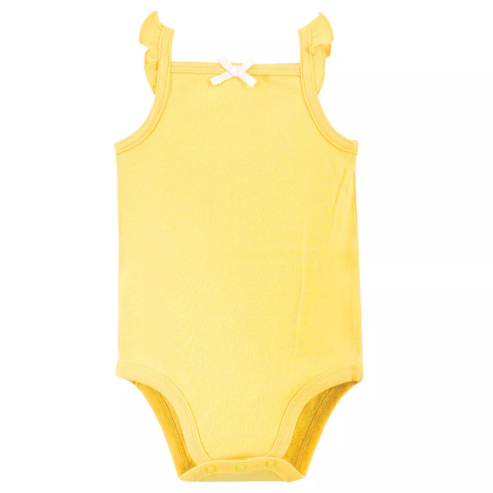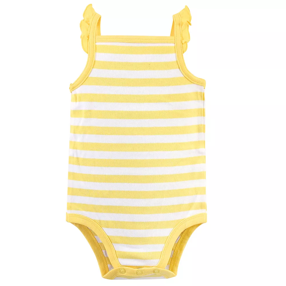 Touched by Nature offers soft organic cotton clothing for the gentlest touch on sensitive and delicate baby skin. Our organic bodysuits feature adorable prints, embroideries, stripes and solids and provide a comfortable base layer that’s great for pairing with pants, shorts, or even wearing under outfits. Our bodysuits are comfortable and cozy for all-day, everyday wear for your little one. Our bodysuits are an essential part of baby’s wardrobe. Touched by Nature Baby Girl Organic Cotton Bodysuits 5pk, Lemon Tree is a great baby essentials set for your little one.