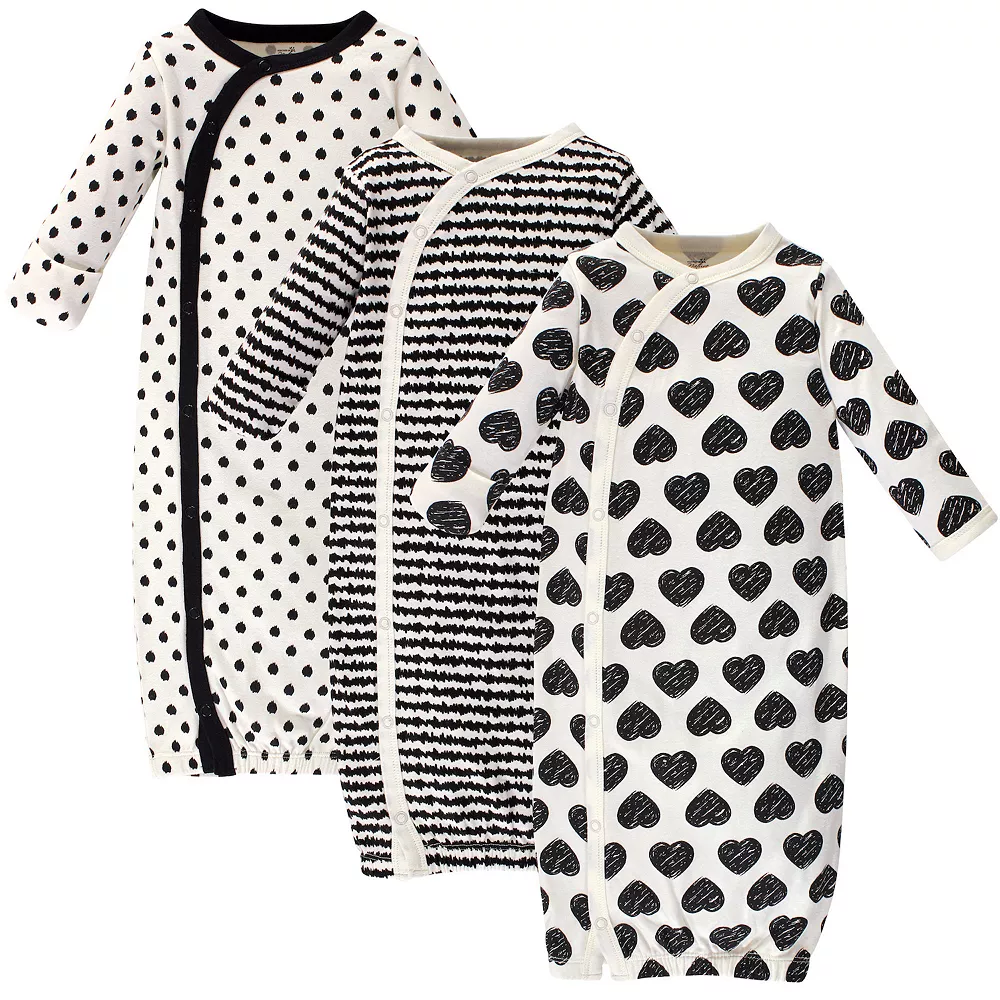 Touched by Nature organic cotton Side-Closure Snap gowns feature playful patterns for sweet dreams. Our organic fabric is super-soft and gentle on baby’s skin, making sleep time cozy and comfortable. The snaps make for easy on and easy off, the elastic band at the bottom and a lap neck make dressing and diaper changes a breeze. Our preemie gowns are suitable for preemies and newborns from 6 to 9 pounds. Our 0-6 month gowns run a bit larger so they can last you up until your baby turns 6 months old. Our gowns are made of 100% cotton, so some shrinking should be expected. Touched by Nature Baby Girl Organic Cotton Side-Closure Snap Long-Sleeve Gowns 3pk, Heart is a great baby essentials set for your little one.