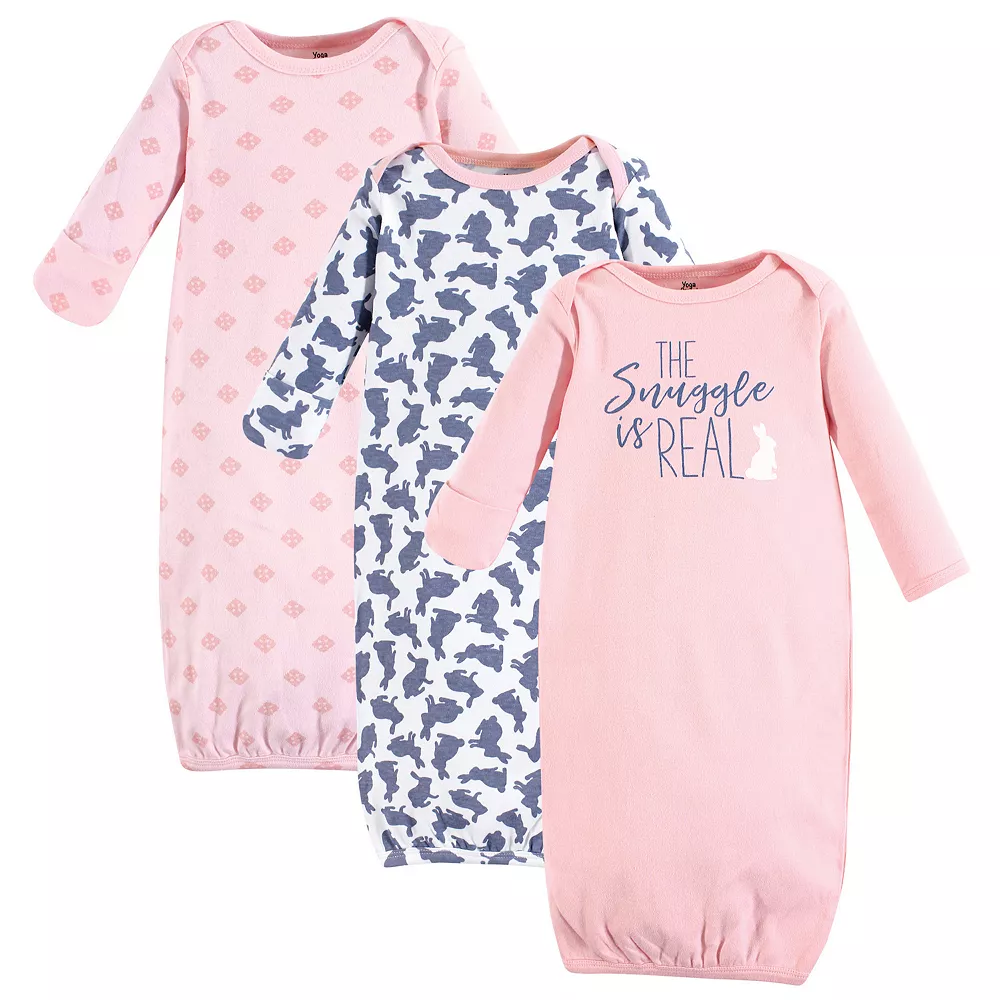 Yoga Sprout cotton gowns are super comfortable and cozy and feature playful patterns for sweet dreams. An elastic band at the bottom and a lap neck make dressing and diaper changes simple. Based on customer feedback, we would like to share size recommendations for you. Our preemie gowns are suitable for preemies and newborns from 6 to 9 pounds. Our 0-6 month gowns run a bit larger so they can last you up until your baby turns 6 months old. Our gowns are made of 100% cotton, so some shrinking should be expected. Yoga Sprout Baby Girl Cotton Long-Sleeve Gowns 3pk, Snuggle Bunny is a great baby essentials set for your little one.